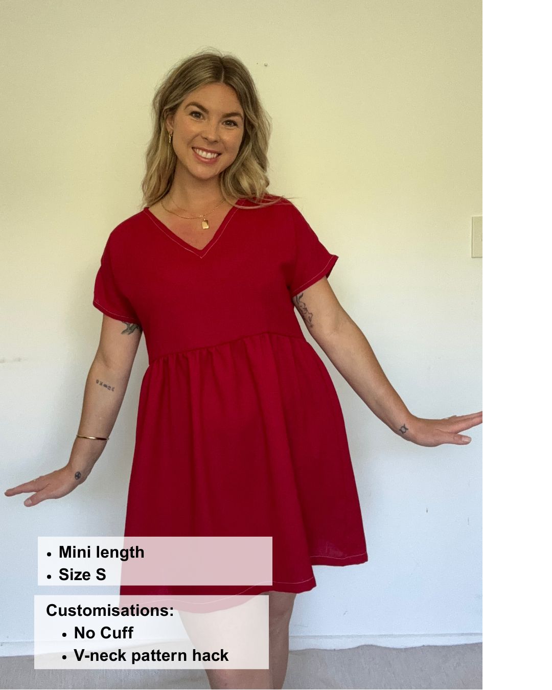 Mini length: We suggest you cut the skirt length at 51cm for a size small. Add or subtract 1.5cm when sizing up or down.