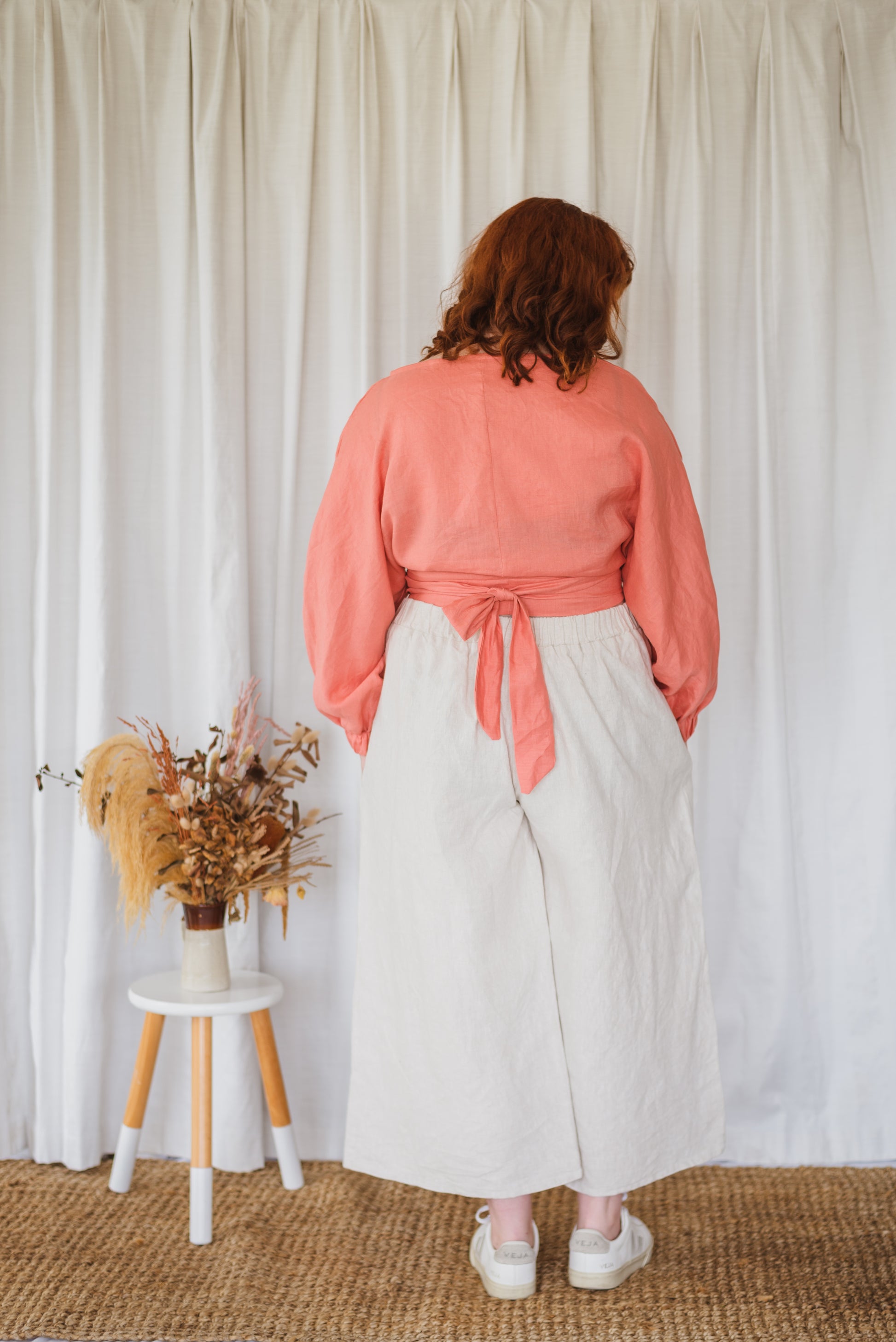 The Lounge Around Pants have are a high waist design with an elastic waistband, inseam pockets and wide legs. Midi or full length? That's entirely up to you!