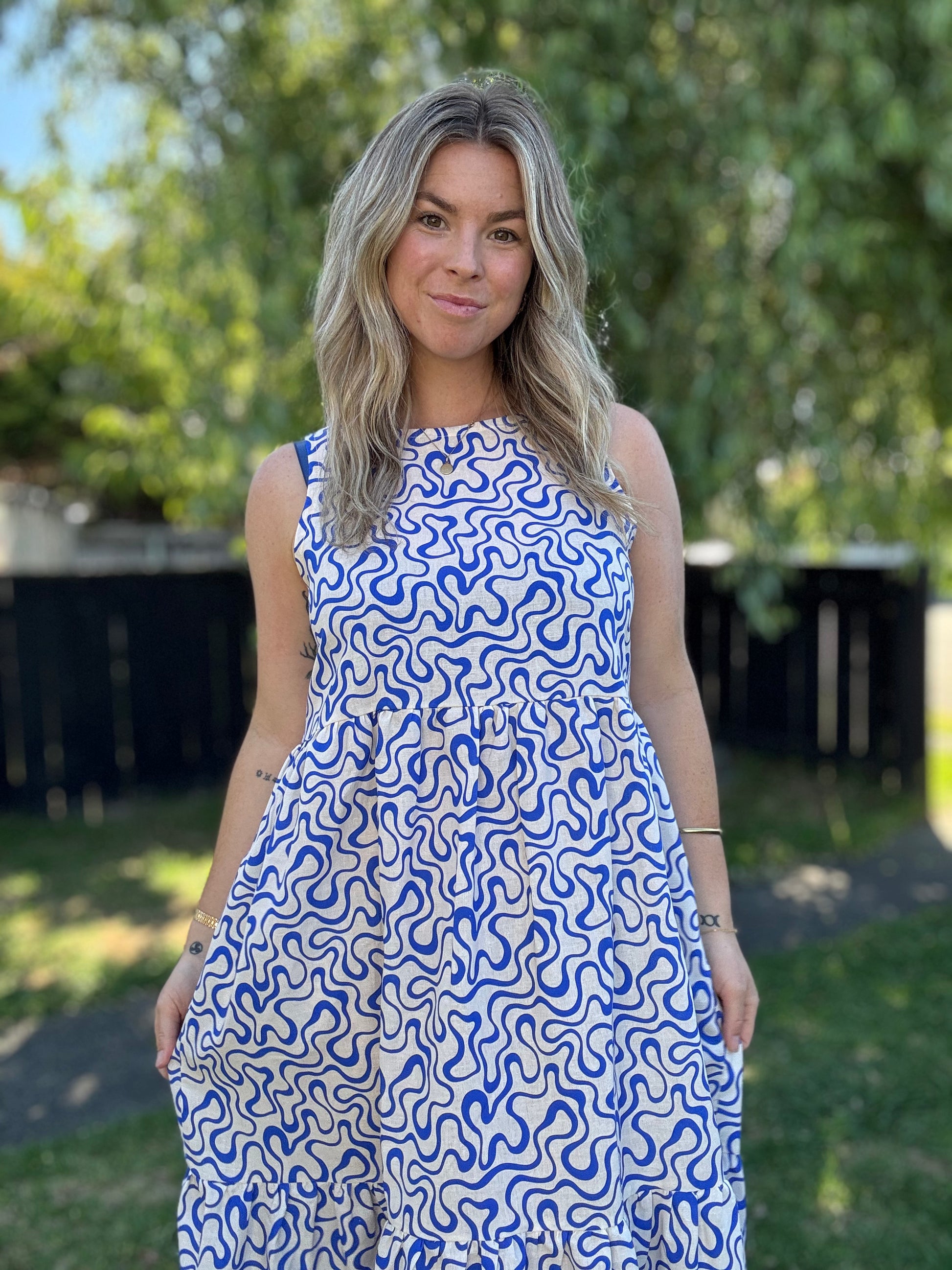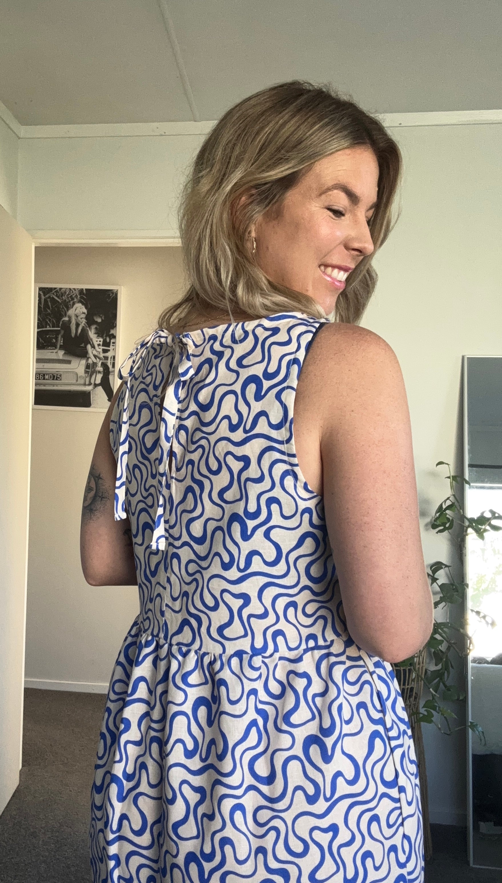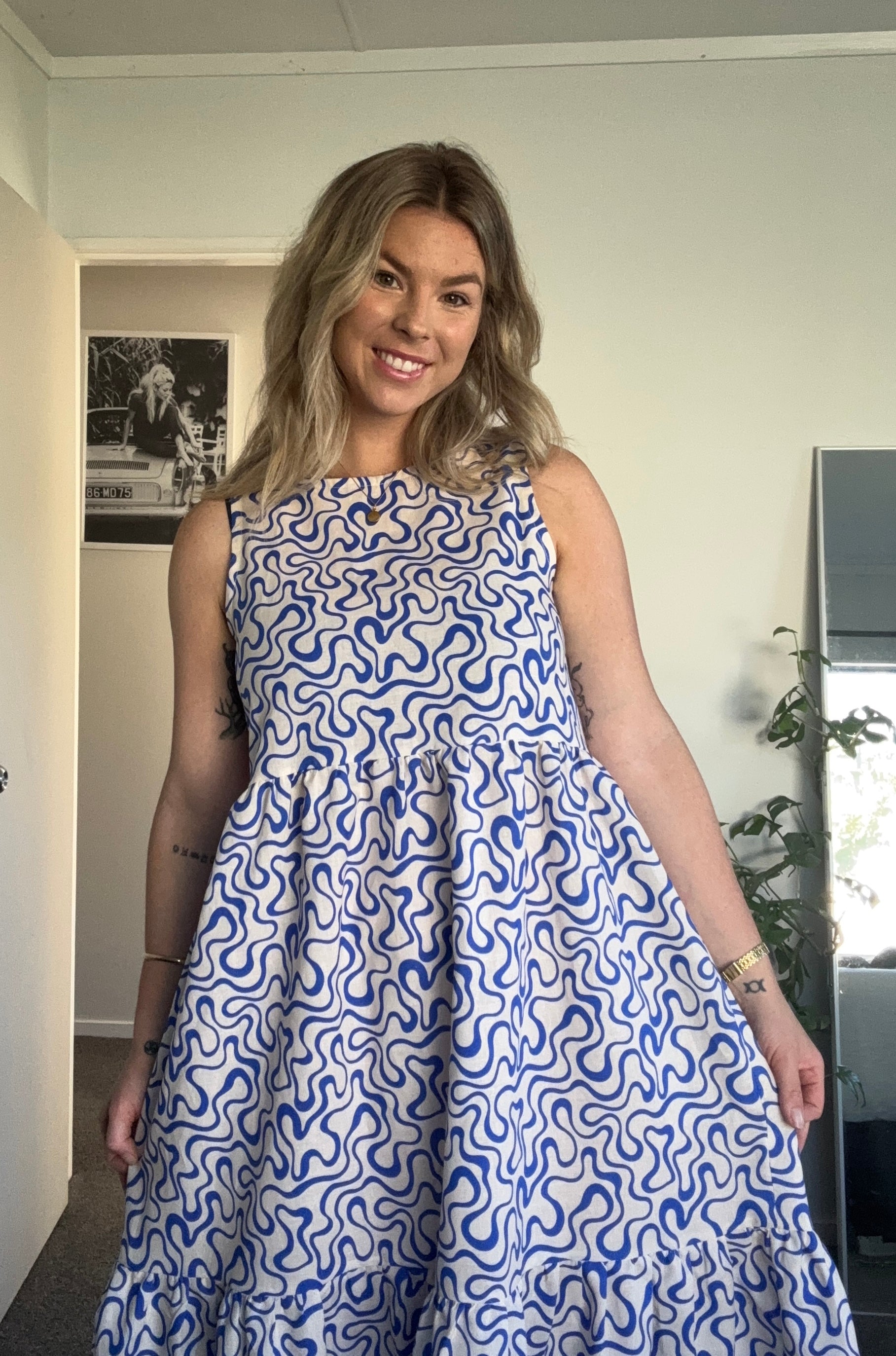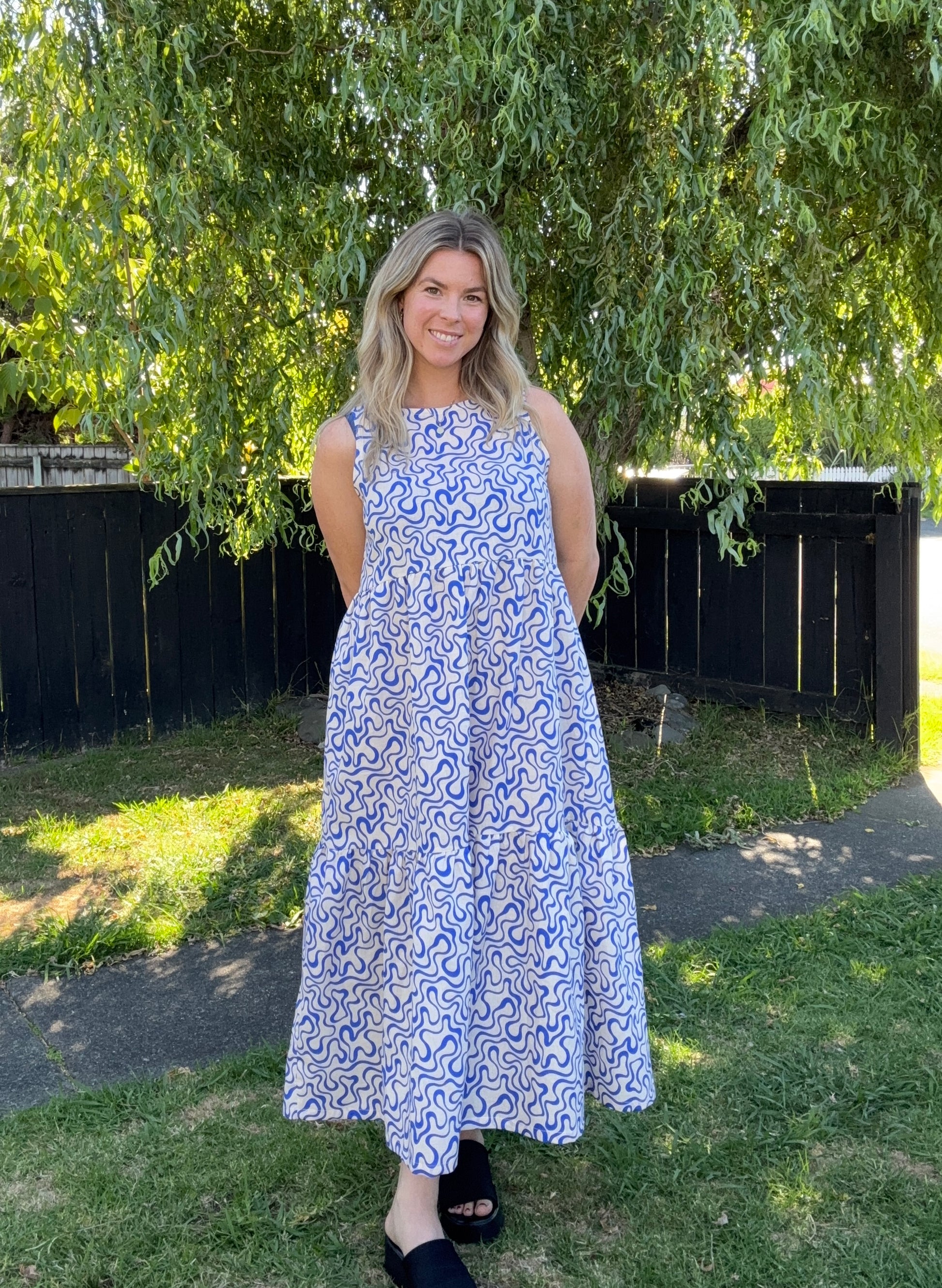 The Izzy Dress is a two tier dress that finishes at a maxi length. She features a bow tie finish at the back and inseam pockets.